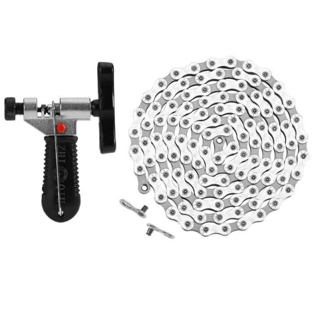 FSC変速自転車用チェーン、9速、18速、27速通用、116L 型番:F90 (チェーン修理ツール+外シルバー内ブラウン)