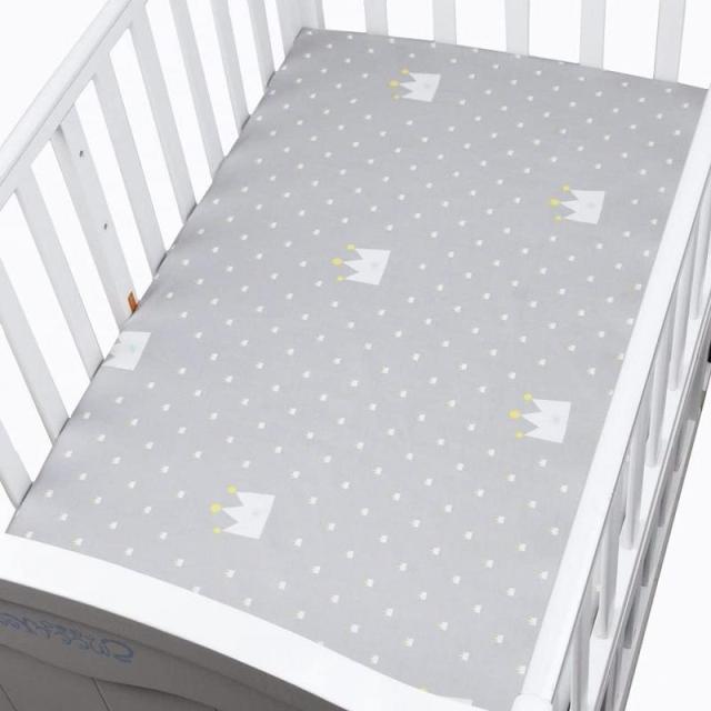 X&F ベビー 子供 敷き布団カバー 綿100% ベビー布団 シーツ 敷きカバー ボックスシーツ マットレスカバー ベビーベッド用 お昼寝 保育園 幼稚園 裏全周ゴム付 130×70cm用 (クラウン*グレー)
