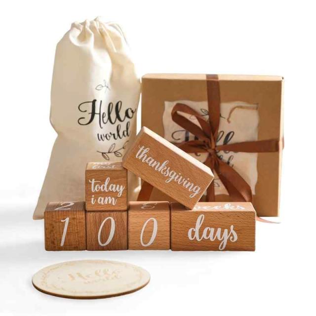 Promise Babe 月齢フォト 6点セット ウッドブロック マイルストーン ニューボーンフォト マタニティフォト メモリアル ベビー 赤ちゃん 写真映え 記念写真 思い出 出産祝い ギフト「収納袋付き」… (ギフトボックス付き)