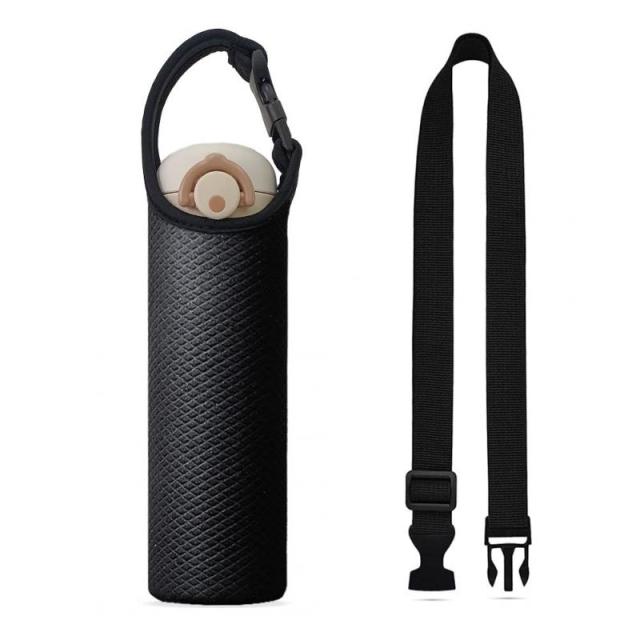 Futakuchi 水筒カバー 480ml 500ml 600ml 水筒ケース 手持ち 肩掛け 両用 ショルダーストラップ付き ペットボトルカバー 衝撃吸収 子供 キャンプ 通学 散策用 (黒い)