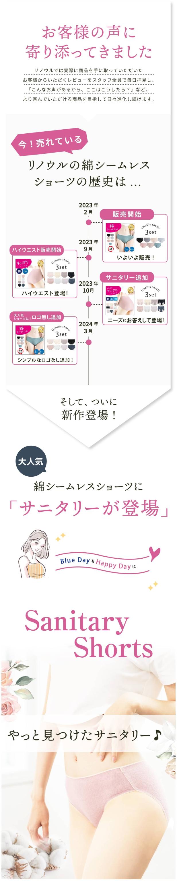 [3枚セット] 1枚660円 羽根つき対応 防水布 サニタリー 綿 シームレス ショーツ 下着 パンツ シンプル レディース 綿 コットン サニタリーショーツ ひびかない パンティー ランジェリー ノーライン 締め付けない パンティライン ドレス スーツ パンツ リノウル