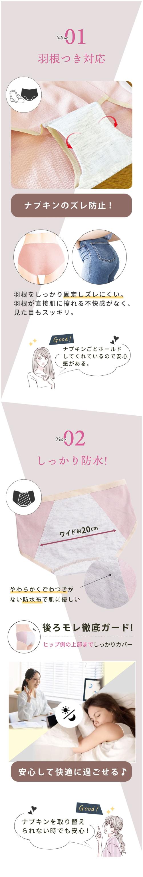 ナプキンをしっかり固定しズレやヨレが気になりません