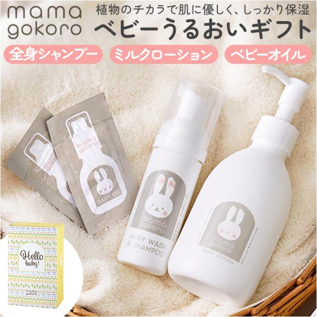 ままごころ ベビー ギフト 出産祝い うるおいギフト 通販 ベビーオイル オイル ミルクローション ローション 全身シャンプー シャンプー うるおい 潤い 赤ちゃん mamagokoro ママゴコロ ギフトセット インテリア ギフト 贈り物