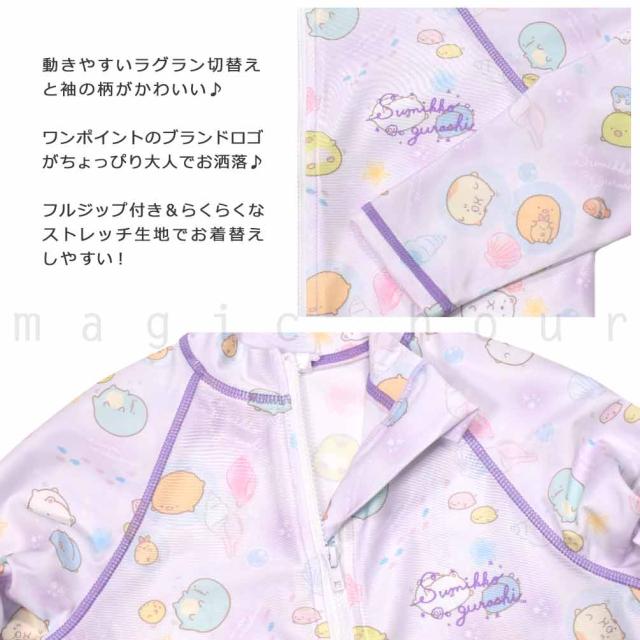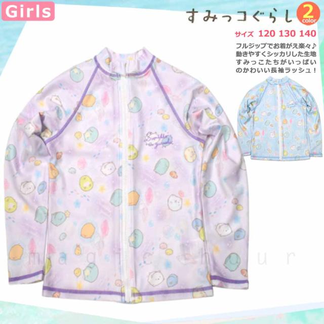 送料無料 ラッシュガード キッズ 子供 長袖 UVカット 水着 女の子 すみっコぐらし ガールズ ジュニア ジップアップ パーカー 女児 ピンク 青 白 紫 120 130 140