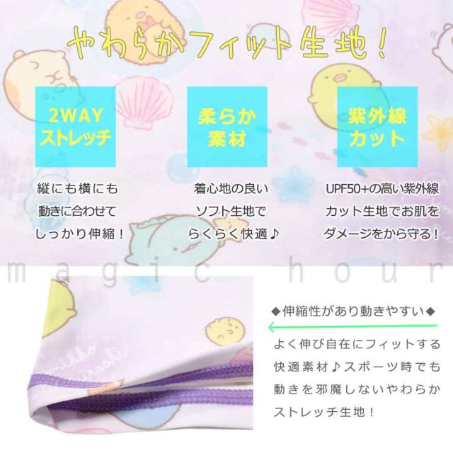 検) パステル ブルー ホワイト パープル サンリオ すみっこぐらし うみっこ 人気 こども ガールズ 日焼け防止 紫外線対策 女子 水泳 プール フードなし 水遊び スイムウェア かわいい 小学生 園児 低学年