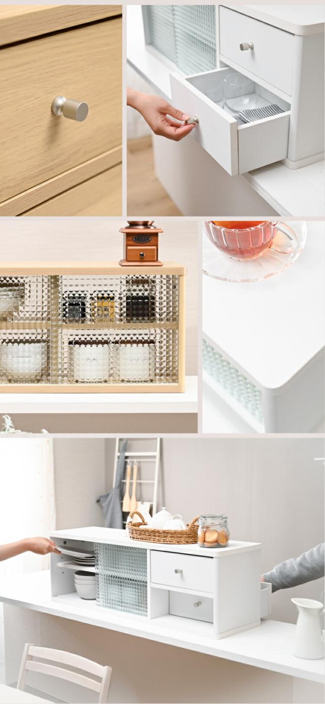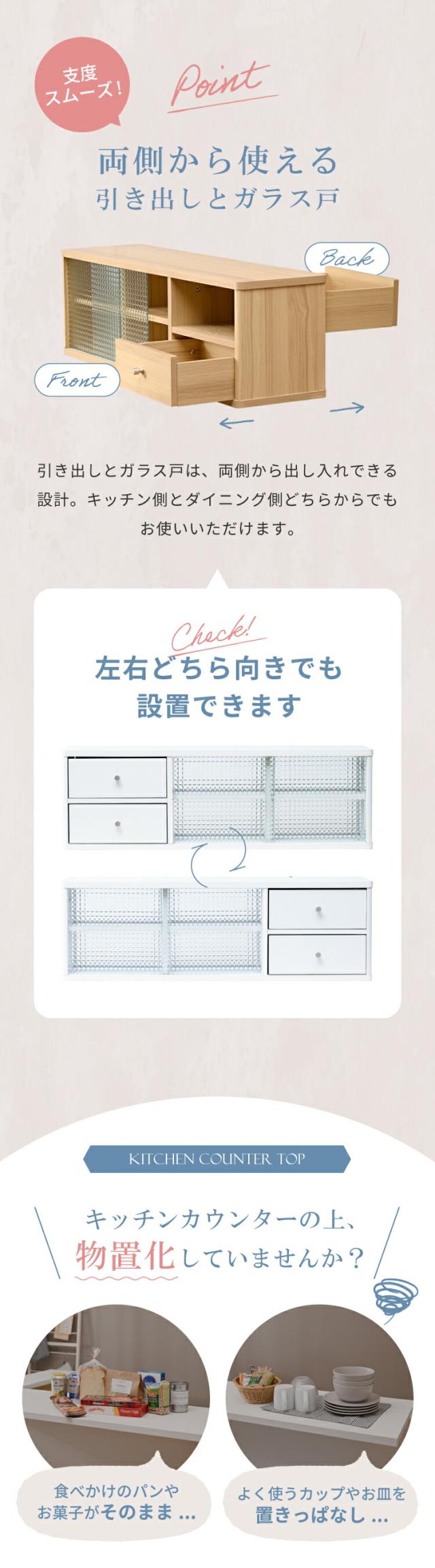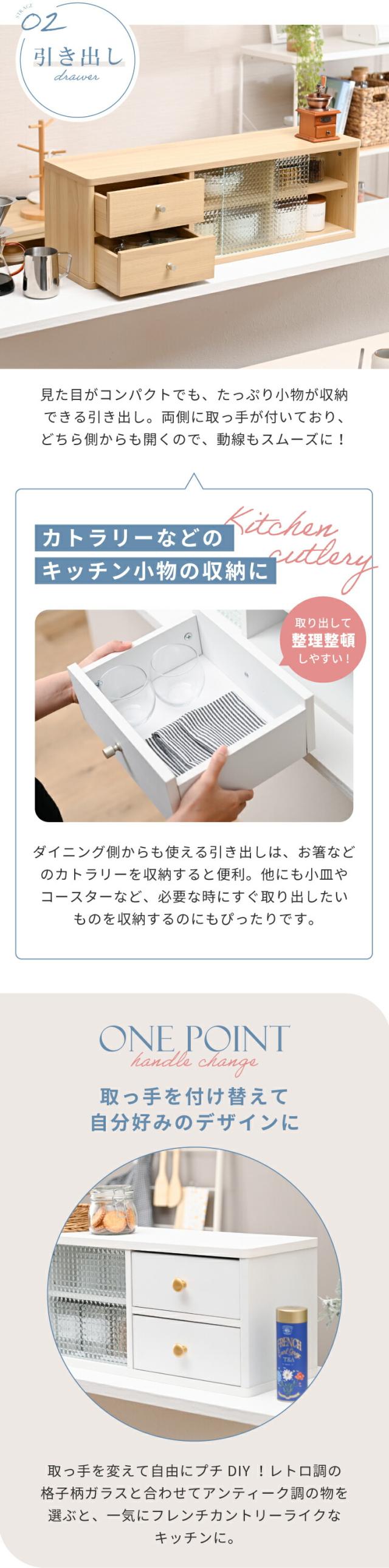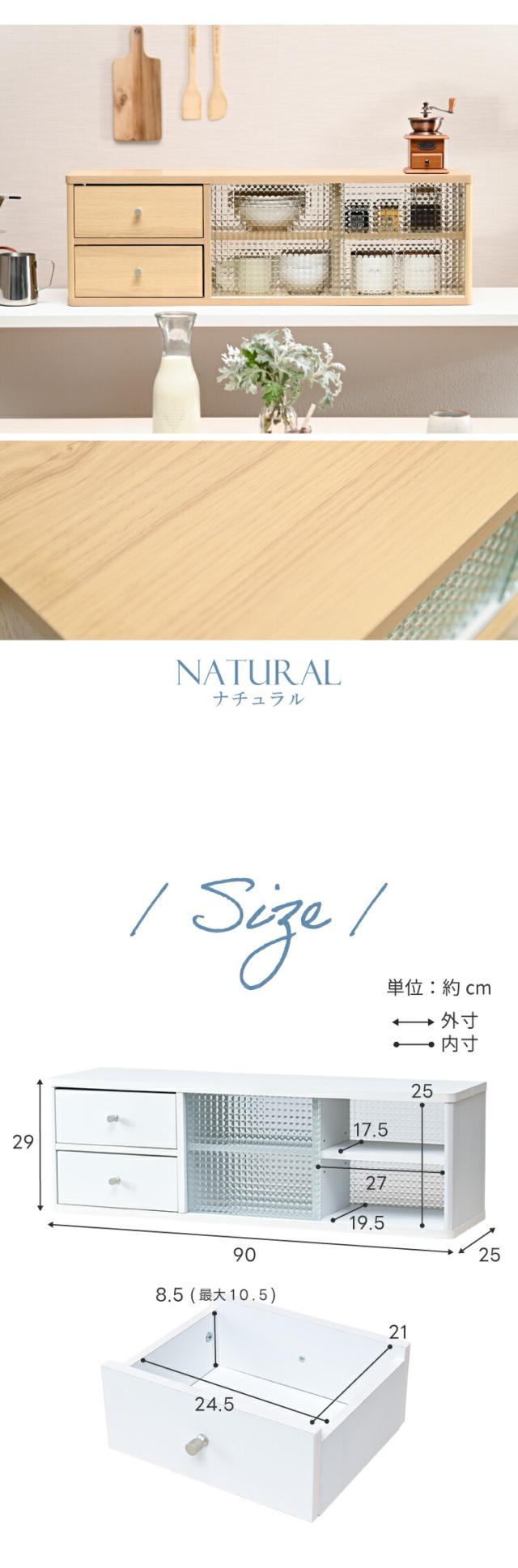 カウンター上 収納 引き出し 食器棚 幅90cm 食器棚 キッチンラック ガラス扉 キッチン収納 卓上 ロータイプ カウンター上ラック ミニ食器棚 棚 上置き棚 収納 木製 調味料ラック 一人暮らし 卓上食器棚 スリム