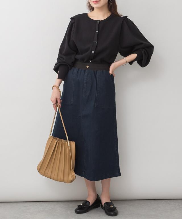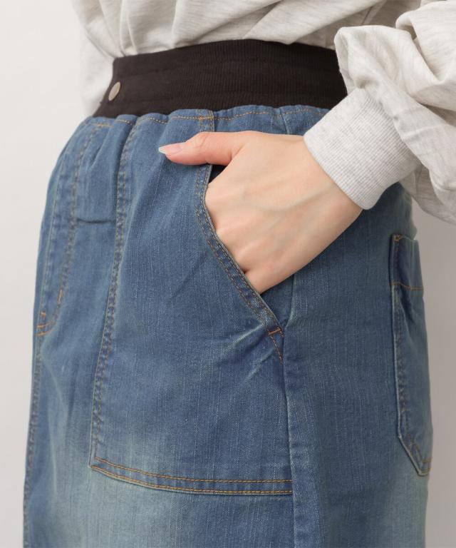 アットワン(atONE)/ウエストリブベイカーデニムスカート