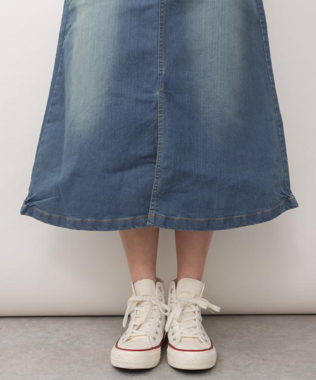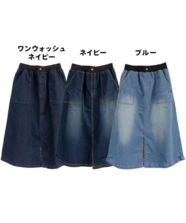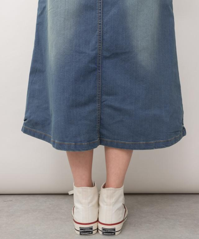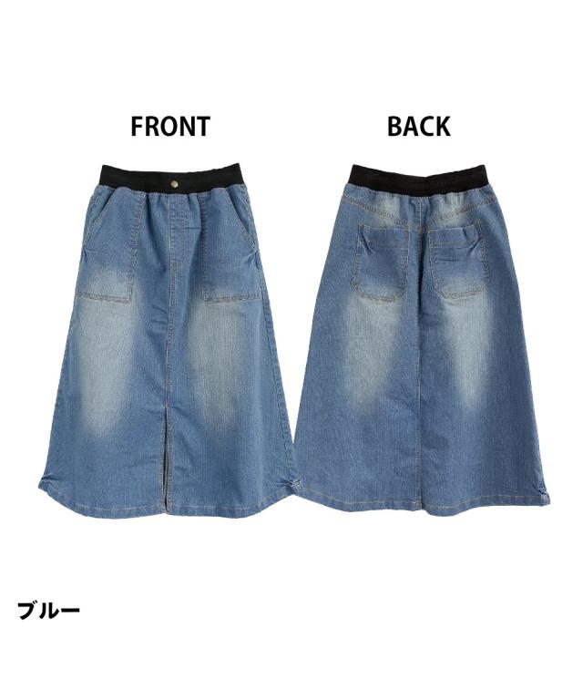 ウエストリブベイカーデニムスカート【サイズ】[Mサイズ]ウエスト:64/32cm、ヒップ幅:52cm、裾幅:68cm、総丈:78cm[Lサイズ]ウエスト:68/34cm、ヒップ幅:54cm、裾幅:70cm、総丈:78cm[LLサイズ]ウエスト:74/37cm、ヒップ幅:57cm、裾幅:73cm、総丈:78cm[3Lサイズ]ウエスト:81/40cm、ヒップ幅:60cm、裾幅:76cm、総丈:78cm[4Lサイズ]ウエスト:88/44cm、ヒップ幅:64cm、裾幅:80cm、総丈:78cm