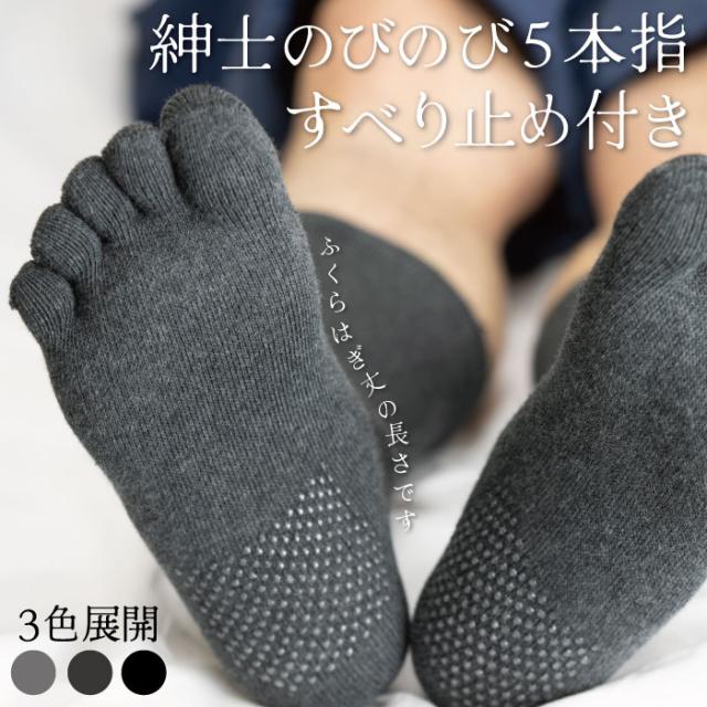 紳士靴下表綿100すべり止め付きのびのび5本指