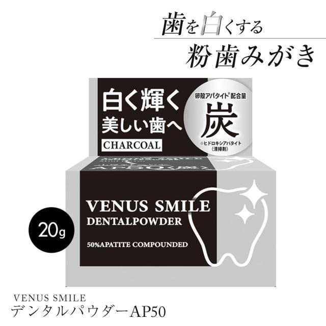 デンタルケア 口臭予防 虫歯予防 歯石 歯垢 口臭 ネバつき すっきり 日本製 黄ジミ吸着 歯垢除去 口臭予防 ヒドロキシアパタイト 歯を白くする ホワイトニング ホームケア ムシ歯予防 オーラルケア デンタルケア ヴィーナス スマイル デンタルパウダーAP50 炭 20g inf-4