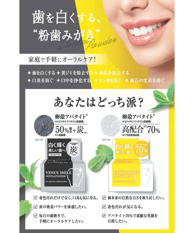 デンタルケア 口臭予防 虫歯予防 歯石 歯垢 口臭 ネバつき すっきり 日本製 黄ジミ吸着 歯垢除去 口臭予防 ヒドロキシアパタイト 歯を白くする ホワイトニング ホームケア ムシ歯予防 オーラルケア デンタルケア ヴィーナス スマイル デンタルパウダー AP70 inf-3