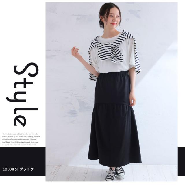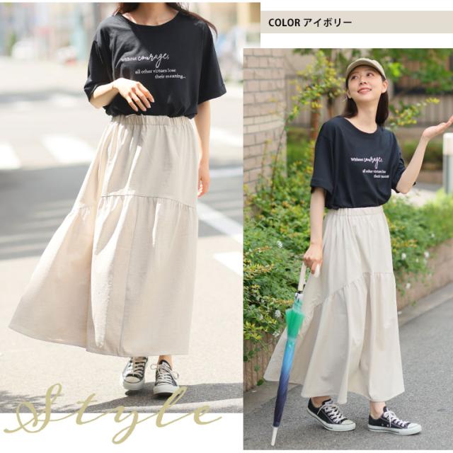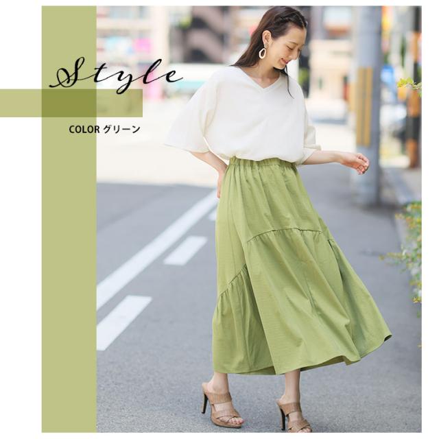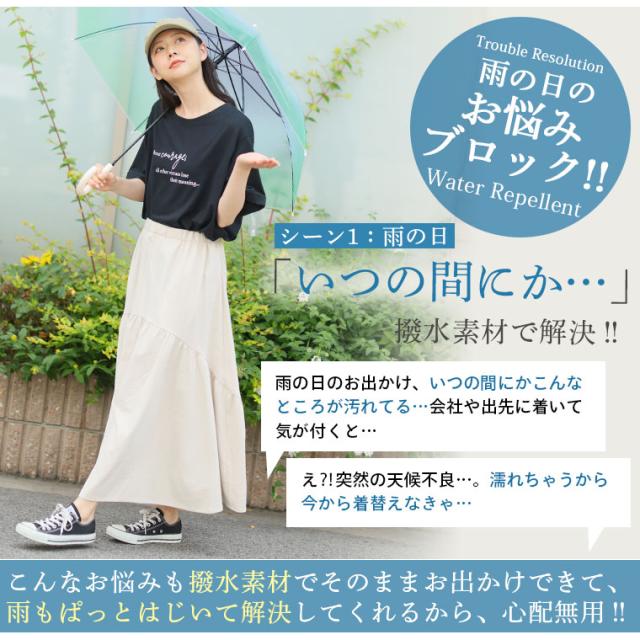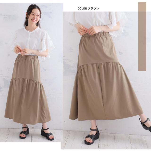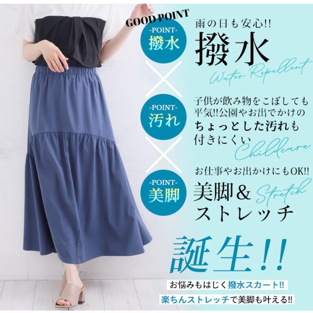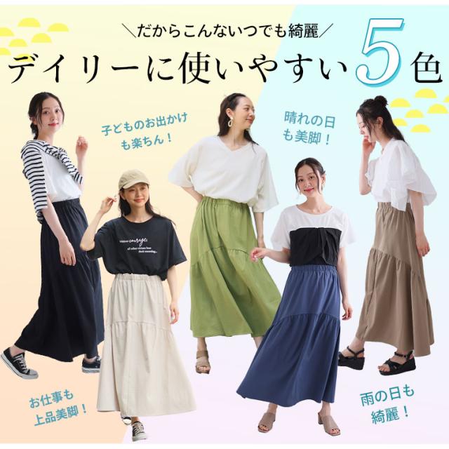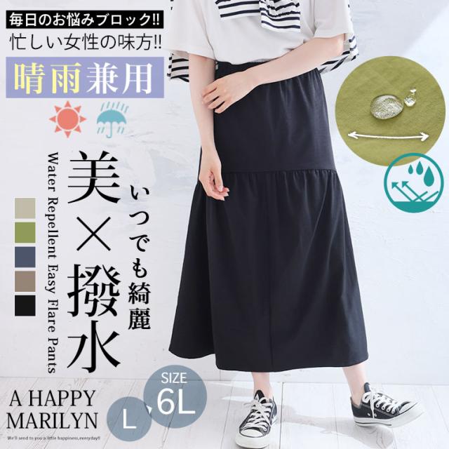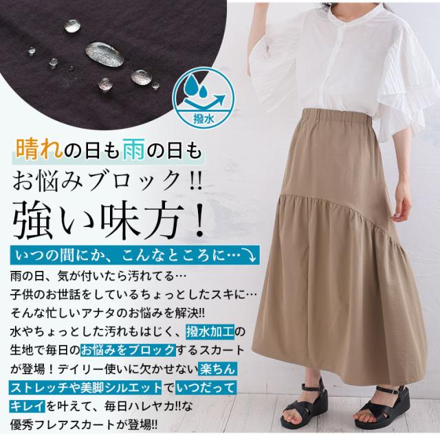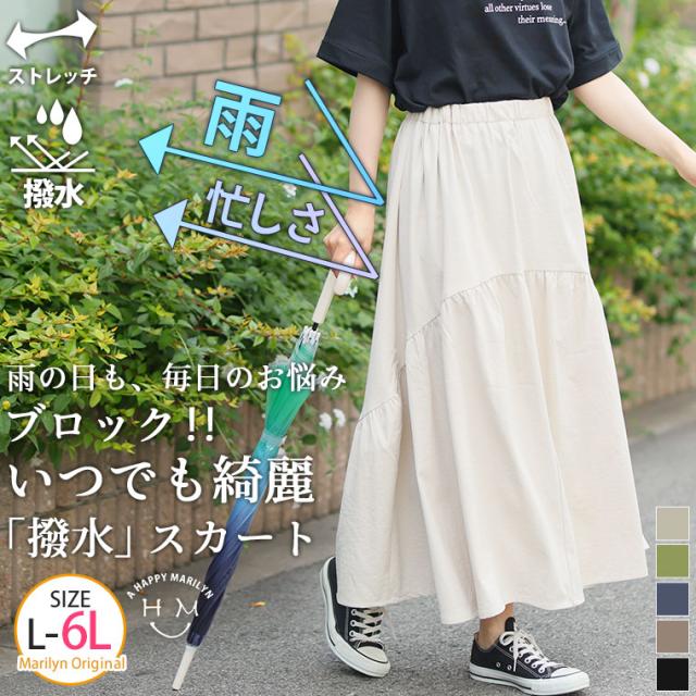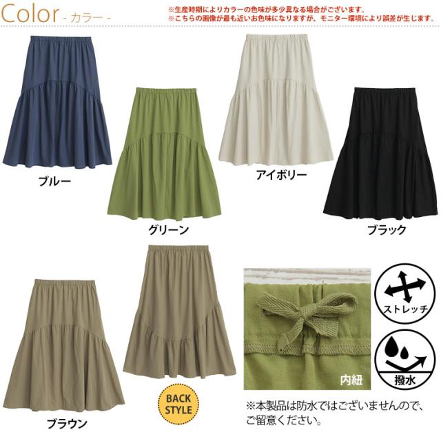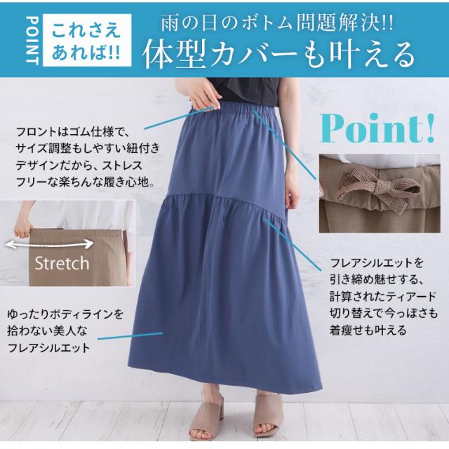 新作 大きいサイズ レディース スカート | 忙しいママも、雨の日も安心! 撥水&ストレッチ ツイル ぽっこりお腹をスッキリ魅せる 美脚フレア ギャザー ティアード スカート [861358] LL 3L 4L 5L 6L