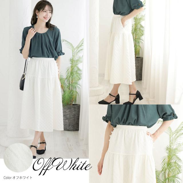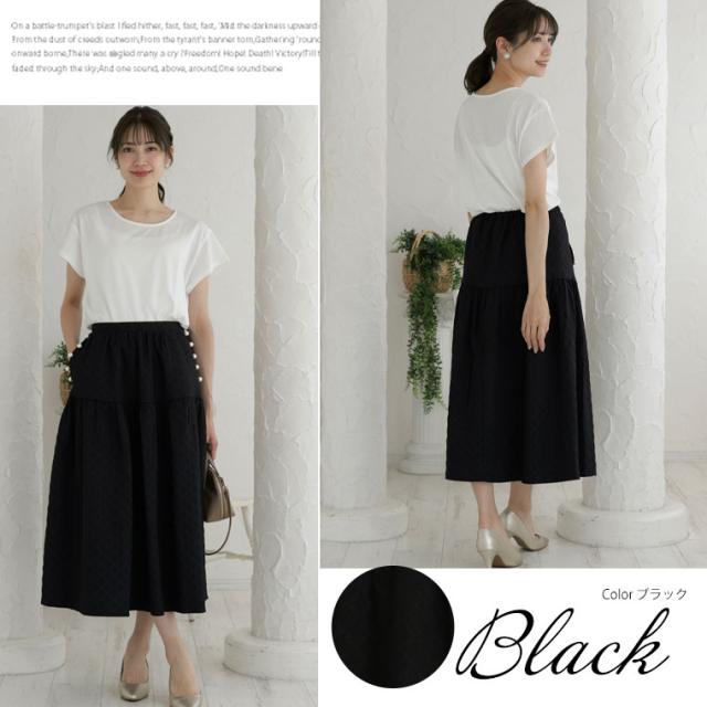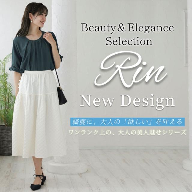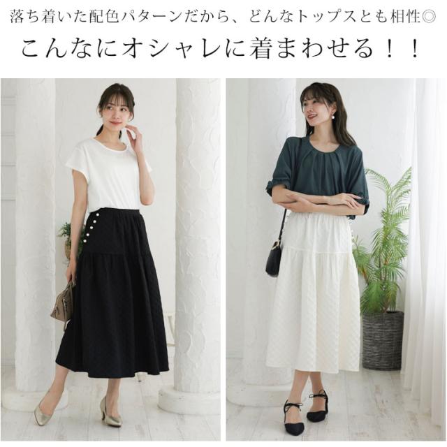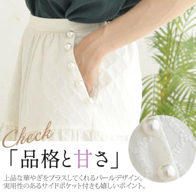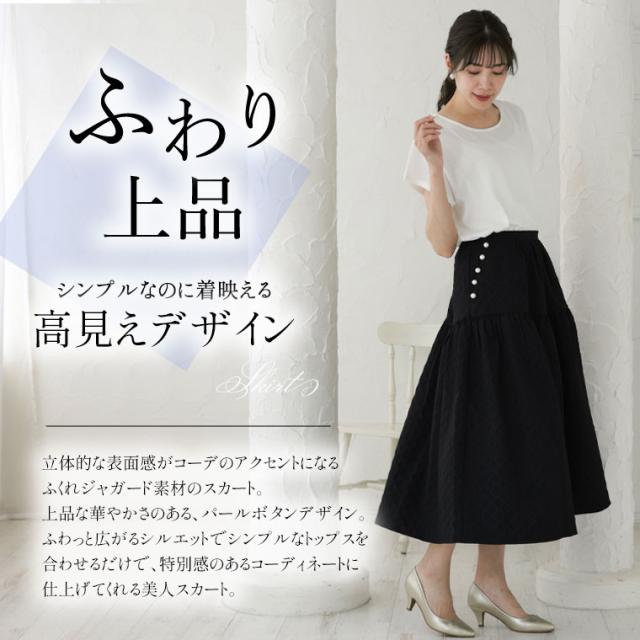 【Rin】大人の華やぎパールデザイン ふくれジャガードスカート