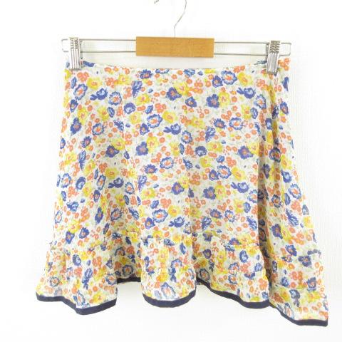 【中古】ハニーミーハニー HONEY MI HONEY ミニスカート フレア シフォン 花柄 オフホワイト 白 青 黄 40