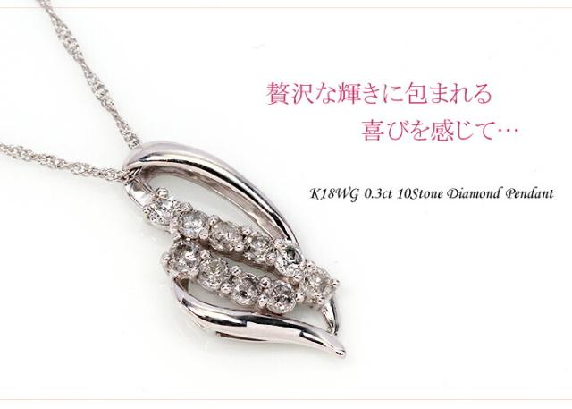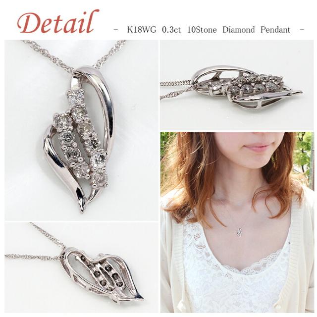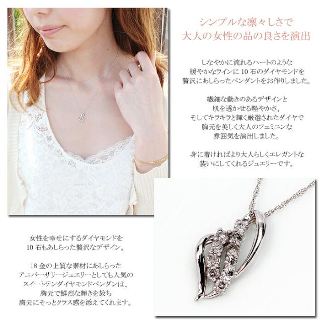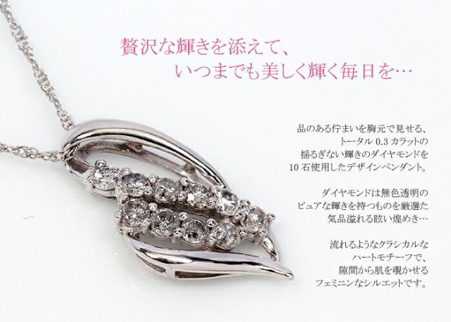 ペンダント ネックレス ダイヤモンド ダイヤ 0.3ct 18金 ホワイトゴールド K18 WG ハート テンストーン 10ストーン 10石 レディース アクセサリー ジュエリー ギフト 000112