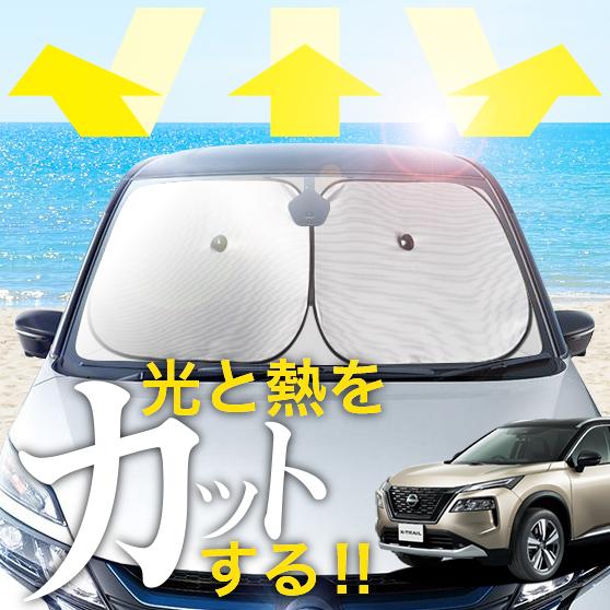 【次世代のサンシェード】【吸盤+5個】 新型 エクストレイル T33 系 フロント サンシェード 車 フロントガラス ワイヤーシェード サイド S X G AUTECH Advanced Package カーテン 日除け 日よけ 断熱 紫外線 UVカット 遮光 夏 車中泊 ワンタッチ 傘