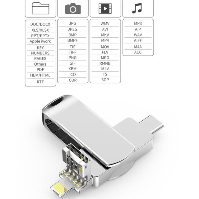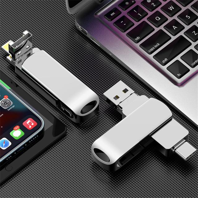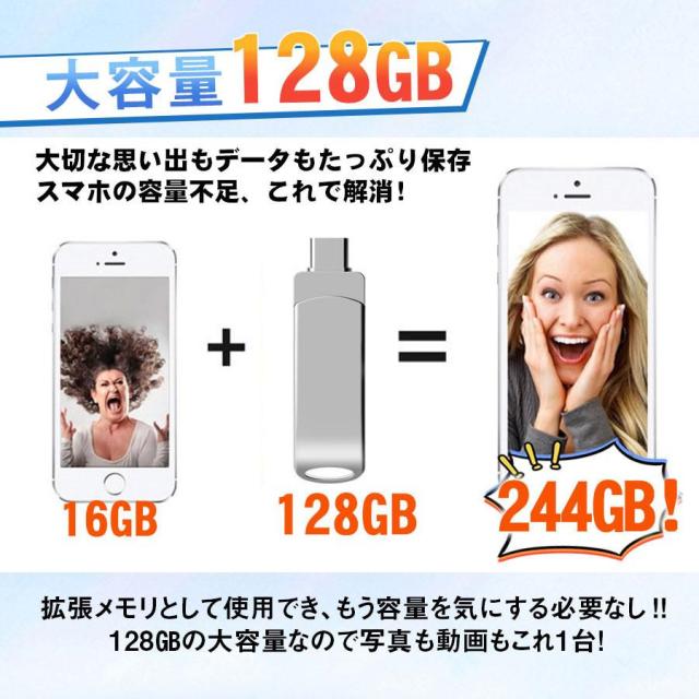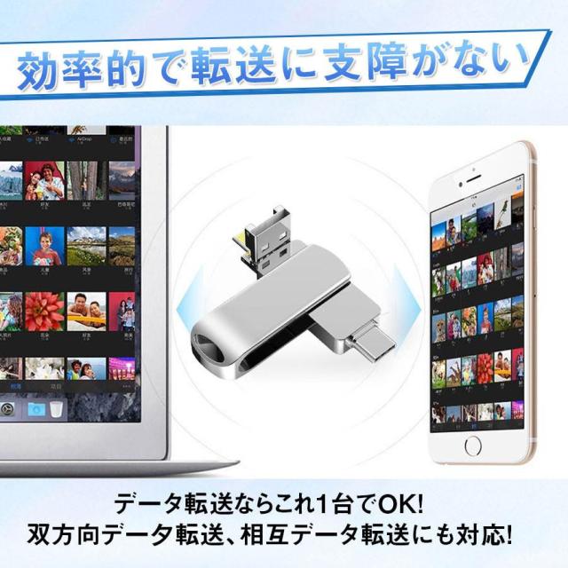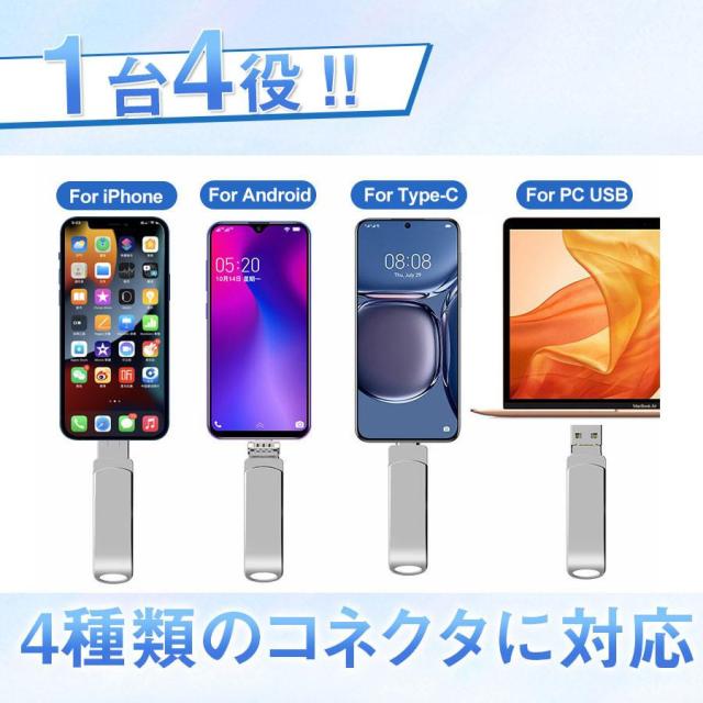 即納!USBメモリー 4in1 128GB 64GB iPhone Android PC対応 ライトニング 大容量 容量不足解消 コンパ