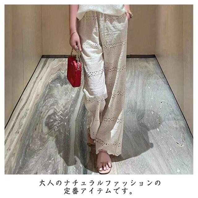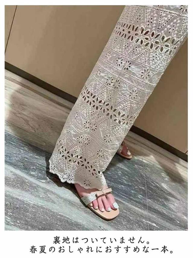 スカラップ スカラップパンツ ワイドパンツ レイヤード レース スカラップパンツ レース ナチュラル 春夏 白 総レース ロングパンツ ロング丈 ゆったり レースパンツ おしゃれ 可愛い