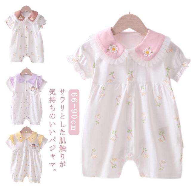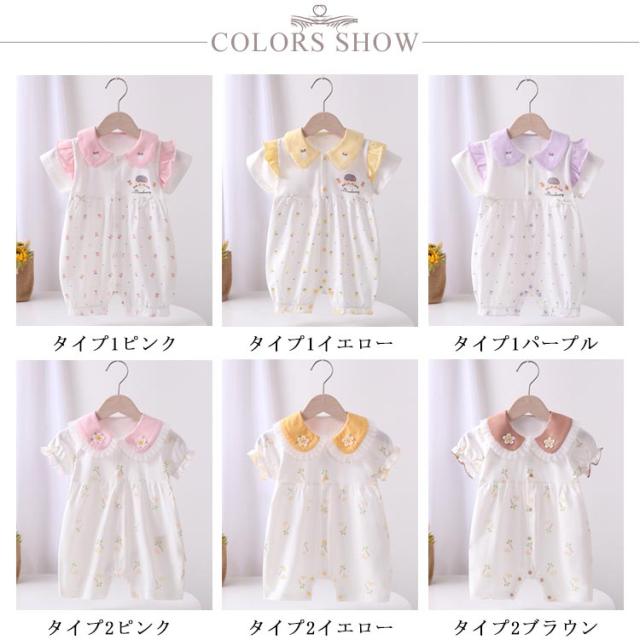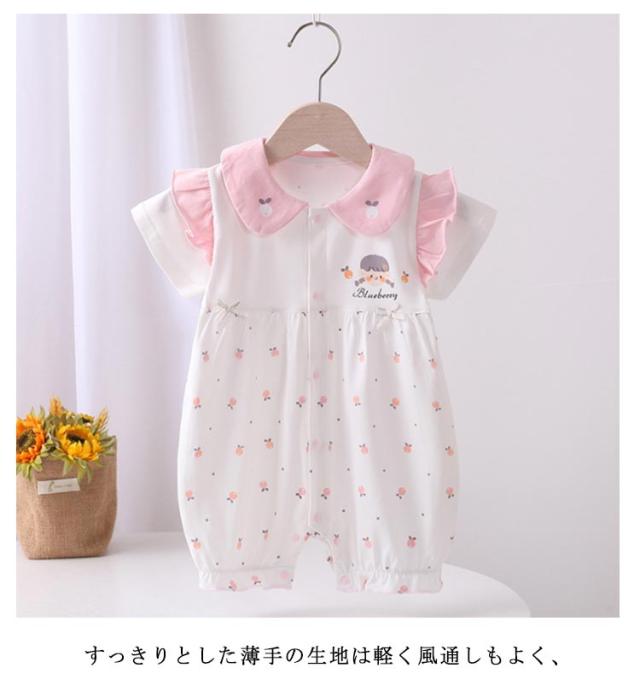 カバーオール ロンパース ベビー服 半袖 秋 コットン ベビー服 かわいい 春 ベビー服 夏 綿 ベビー 新生児 子供服 キッズ 花 女の子 おしゃれ ナチュラル ロンパス 66 73 80 90 あせも対策 薄手