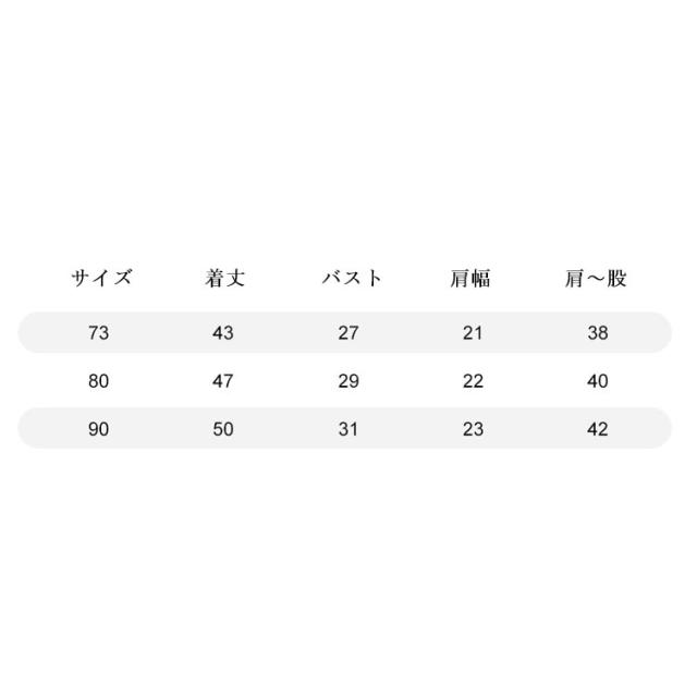| 66cm 73cm 80cm 90cm 柔らかく優しい肌触りの生地だから、着心地! すっきりとした薄手の生地は軽く風通しもよく、 サラリとした肌触りが気持ちのいいパジャマ。 プチプライスだから、洗い替え用も買いやすい♪ | |