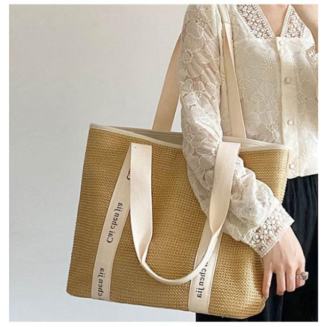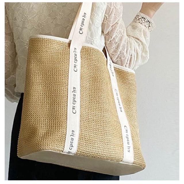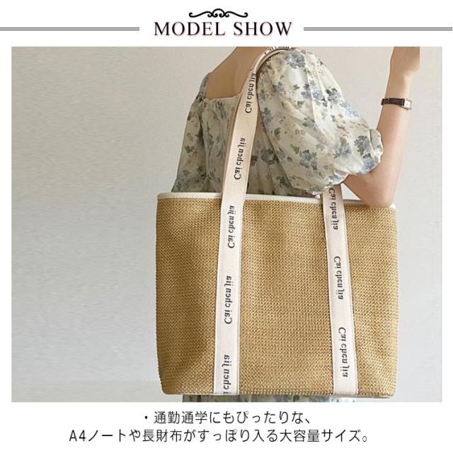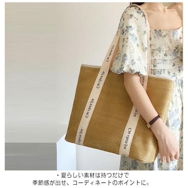 かごバッグ トートバッグ サマーバッグ 自立 ロゴテープ 鞄 トート カゴバック ファスナー レジャー バッグ ハンドバッグ 軽量 お出かけ キャンプ かごバッグ 上品