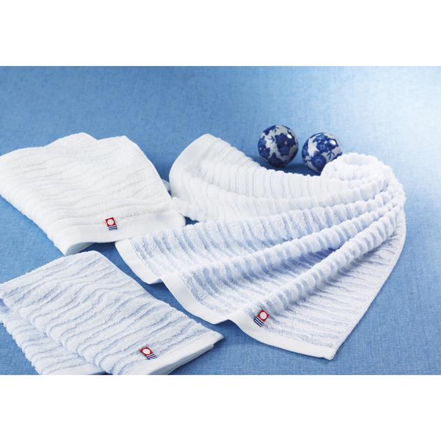 伊予伊予とは今治の古称です。一説では古代人は湧水の事を「いゆ」と呼んでおり、これが「いよ」に転じました。水の湧き出ずる所は、特別な地として扱われるようになり地名として広まったとも言われています。水の湧き出ずる国、伊予。今治は、その古称の由来のように豊かな水資源と奈良時代から築き上げた織りの技で、世界でも有数のタオル産地となりました。この「伊予の白波」は、今治の誇るジャガード織でその湧水や瀬戸内の白波の美しさを表現しております。