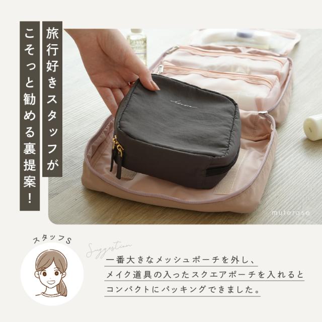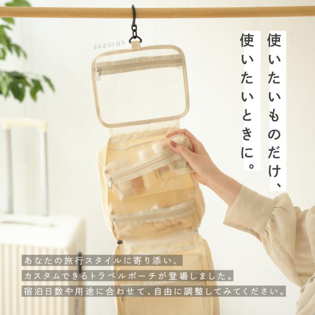 旅行スタイルや宿泊日数に合わせてカスタムできるトラベルポーチ。