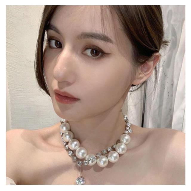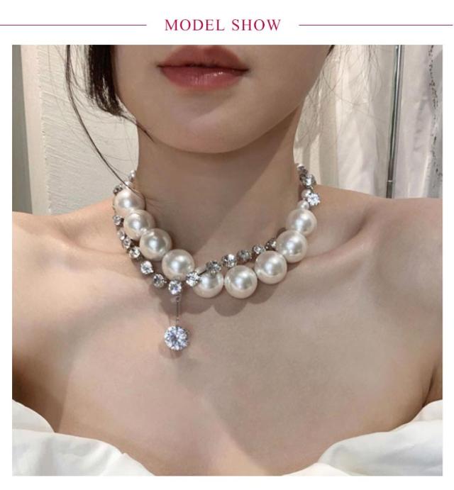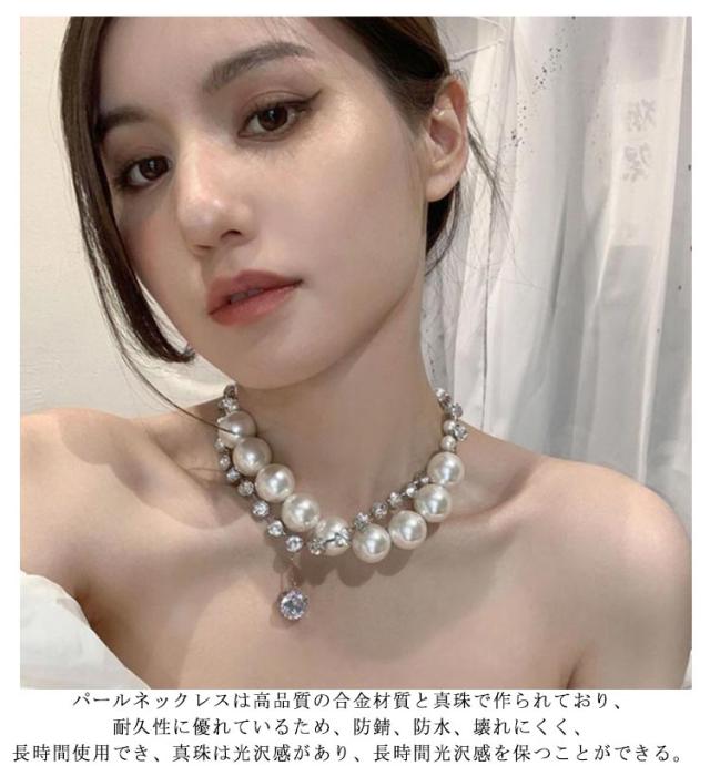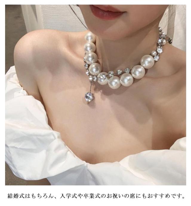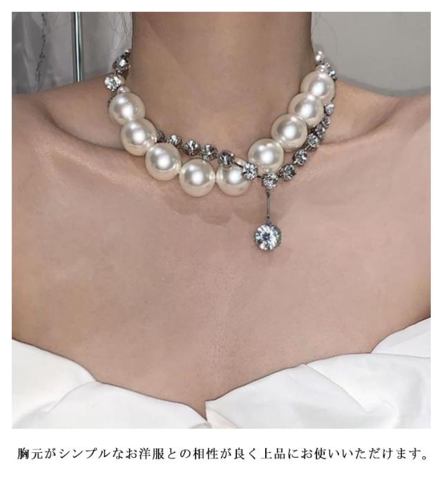 ネックレス パールネックレス 2点セット ラインストーン ジュエリー 結婚式 パール 首飾り 20代 30代 2点セット 2次会 大粒 フォーマル カジュアル 大人 ママ 母 パーティー 40代 披露宴 大粒ネックレス 入学式 卒業式 シンプル アクセサリー