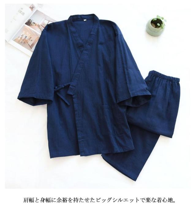 | 浴衣のような前開きパジャマ上下セパレートが脱着簡単。 通気性と吸水、吸湿性に優れたコットン素材。 さらさらとした素材を使っているので眠るときにもオススメ。 通気性に優れた、清涼感がある素材でこれからの季節には手放せない。 肩幅と身幅に余裕を持たせたビッグシルエットで楽な着心地。 夏のuv対策や冷房対策にもピッタリの一枚。 | |