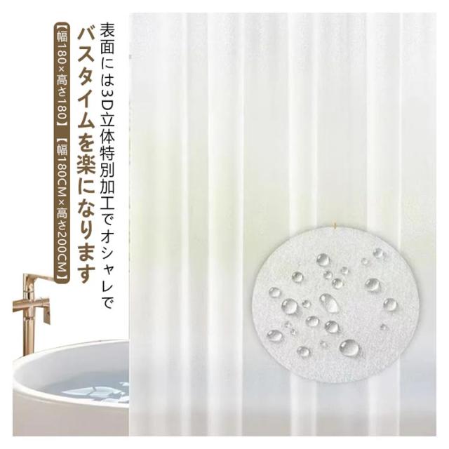 シャワーカーテン 半透明 防カビ 防水 ユニットバスカーテン お風呂カーテン 半透明 3D立体加工 風呂カーテン 浴室カーテン レジ カウンター 遮像 ビニールカーテン 180×180cm 間仕切り フック付き 軽量 速乾 取付簡単