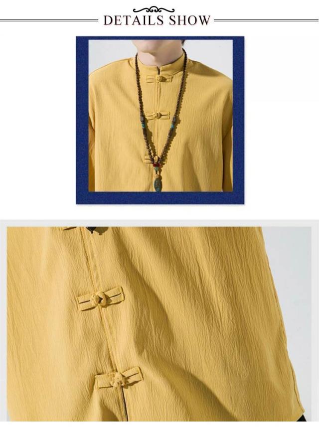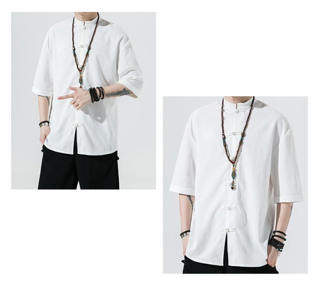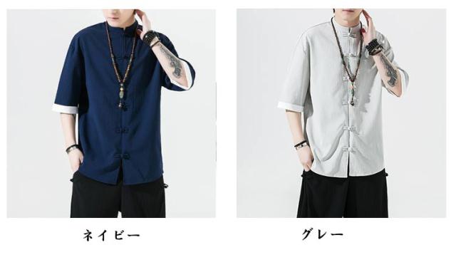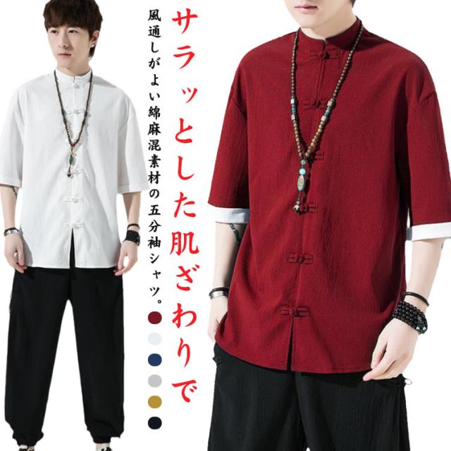 リネンシャツ きれいめ 麻 綿 カジュアルシャツ 5分袖 シャツ 無地 前開き ゆったり トップス 涼しい リネンシャツ カンフーシャツ バンドカラー 爽やか 春夏物 チャイナシャツ おしゃれ 大人カジュアル 敬老の日 贈り物 父の日