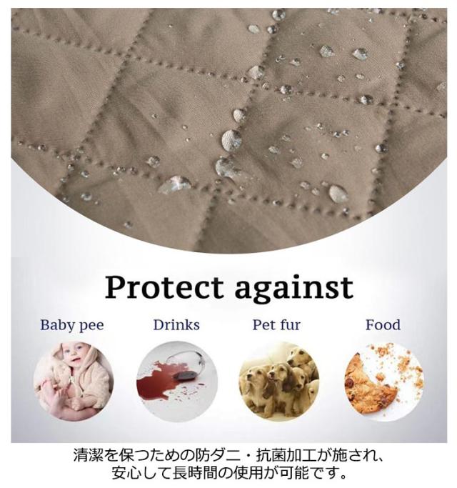 | 1人掛け!おしゃれで素敵な撥水加工ソファーカバー。お子様やペットのいるご家庭におすすめ!子どもの元気な遊ぶも、愛犬や愛猫の爪痕も、このカバーがしっかりとガード。ソファの表面を傷から守ります。 通気性も優れて、オールシーズン快適に。 一人でも簡単に取り付け! ズレ防止対策!子供やペットが動き回っても、カバーがズレる心配はありません。 側面に固定バンドが付く! 清潔を保つための防ダニ・抗菌加工が施され、安心して長時間の使用が可能です。 | |