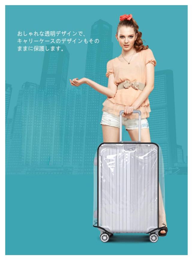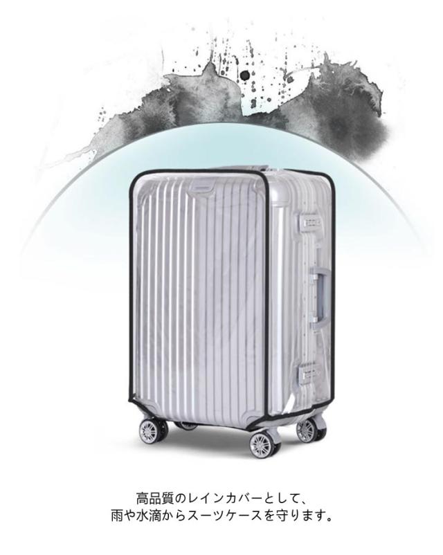 | 【スーツケース カバー】【7サイズ】【防水・傷防止】 お気に入りのキャリーケースを雨や傷から守る、高品質なスーツケースカバー。 おしゃれな透明デザインで、キャリーケースのデザインもそのままに保護します。 高品質のレインカバーとして、雨や水滴からスーツケースを守ります。 傷防止: 擦れや衝撃からキャリーケースを守る強固な素材を使用した。 出張や旅行、アウトドアなどさまざまなシーンでの使用に適しています。 雨の日も安心してお出かけできる頼れるアイテムです。 | |