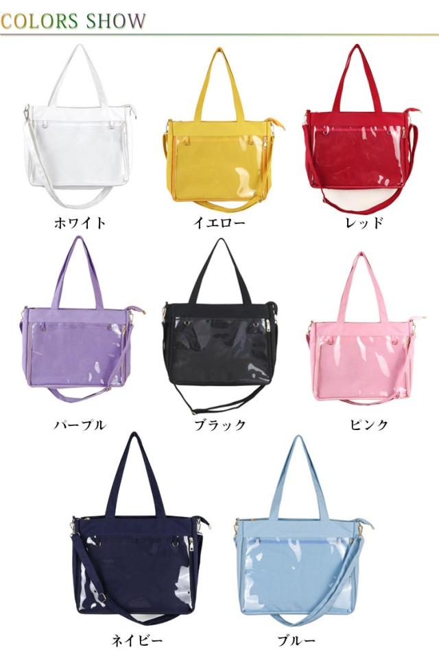 ビニール ビニール 透明 痛バッグ ショルダーバッグ トートバッグ クリアバッグ 透明ポケット 痛バ 軽量 キャンバス地 ガールズ 全8色 透明 痛バッグ トートバッグ キャンバス地 痛バ ビニール 透明ポケット A4 可愛い 大容量 通学