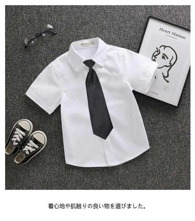 | 【スクールシャツ】【100〜170cm】【ネクタイ付き】 通園・通学・冠婚葬祭と使えるホワイト無地半袖シャツ 通気性に優れた生地でさらっと快適 着心地や肌触りの良い物を選びました。 普通着としてもお洒落です! 七五三や卒入学式、発表会、ちょっとしたお出かけや、冠婚葬祭まで | |