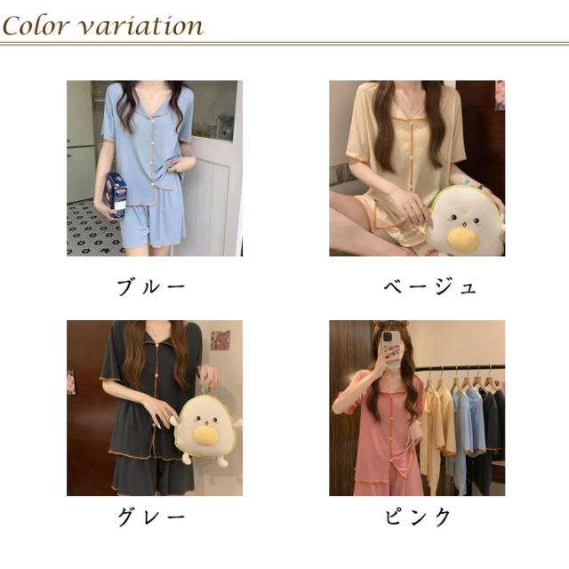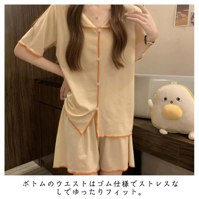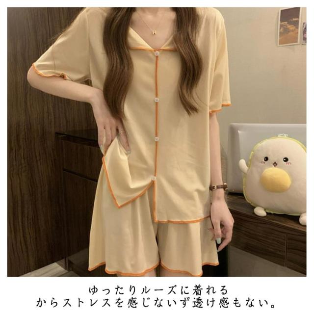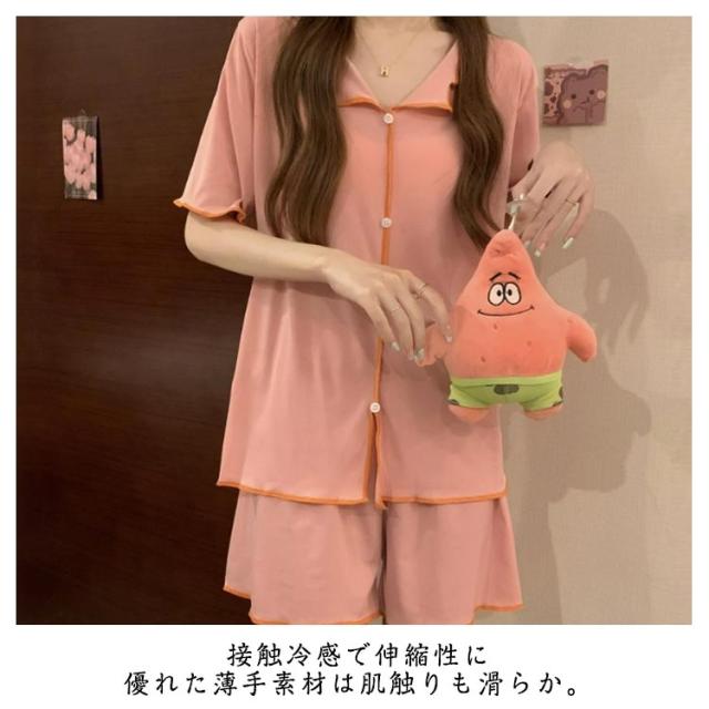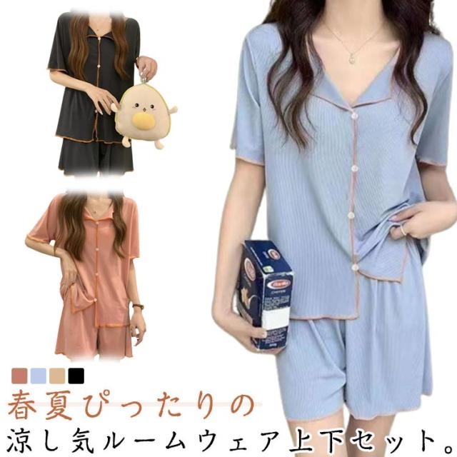 冷感 上下セット ルームウェア 冷感 薄手 前開き 半袖 ショートパンツ 夏用 セットアップ 大きいサイズ 涼しい 可愛い 通気性 柔らかい