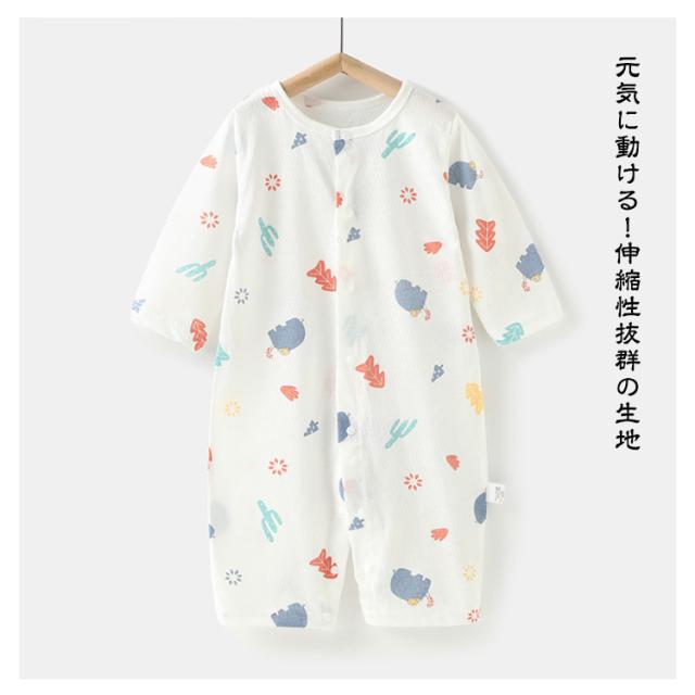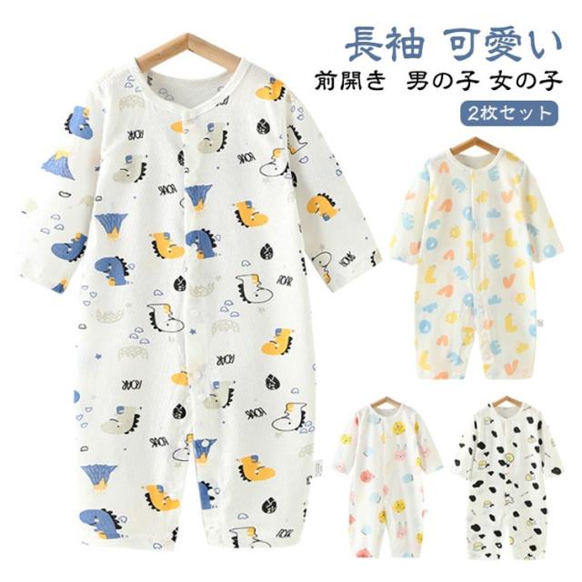 ベビー服 ロンパース 夏 春夏 男の子 女の子 韓国 夏服 前開き 春秋 キッズ コットン 薄手 赤ちゃん カバーオール 2枚セット 綿 ベビー服 長袖 おしゃれ 新生児 可愛い 59 66 73 80 90cm ルームウェア 部屋着 パジャマ 出産お祝い