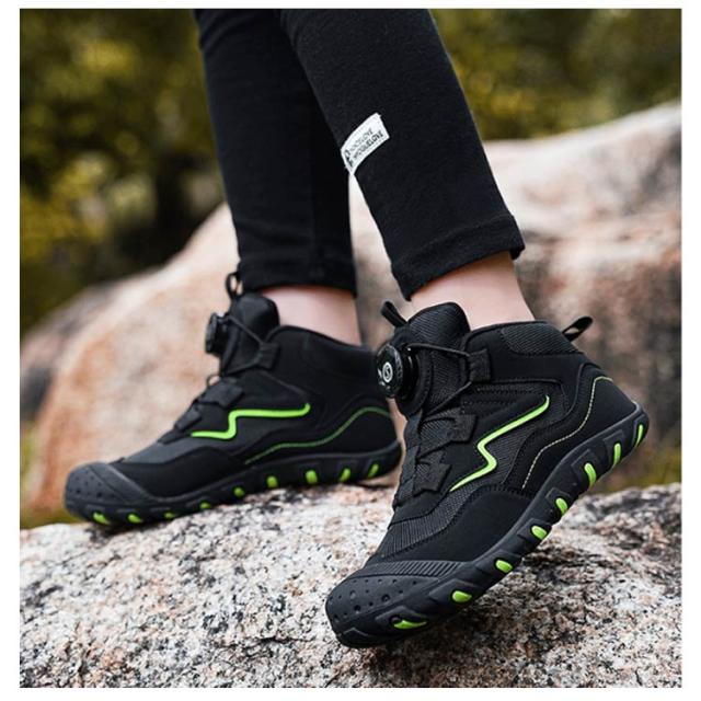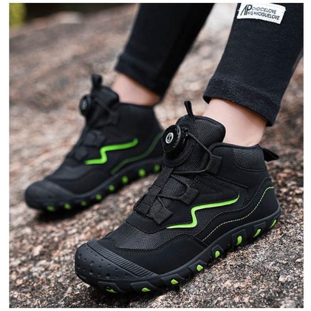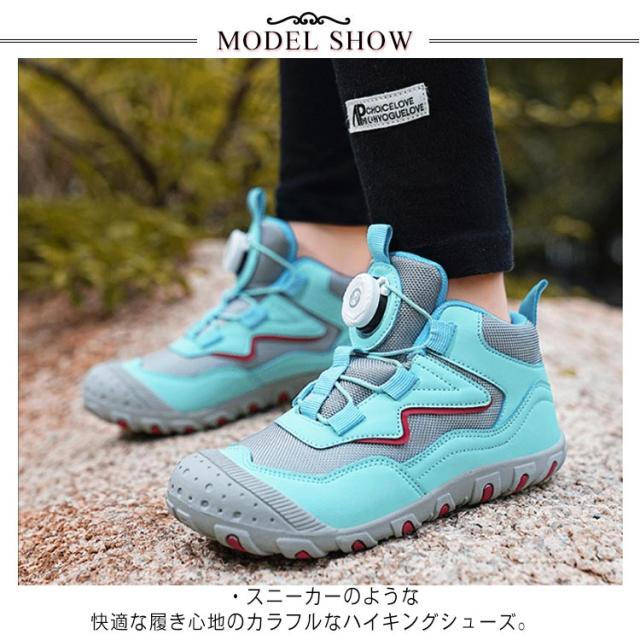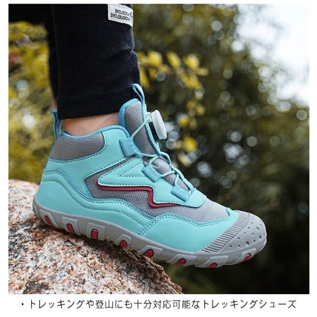 ダイヤル式 スニーカー ジュニア トレッキングシューズ ハイカット キッズ 履きやすい 紐なし ハイキングシューズ ウォーキングシューズ 男の子 女の子 アウトドア トレッキングシューズ キャンプ 遠足 軽量 運動会 カジュアル