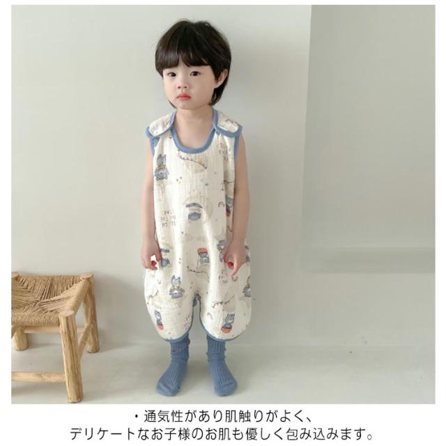 夏 綿 ベビー 袖なし 4重 コットン ガーゼ キッズ 2重 新生児 クーラー 柔らかい お昼寝 春 スリーパー 秋 パジャマ 寝冷え スリーパー 寝汗 出産祝い 洗える プレゼント