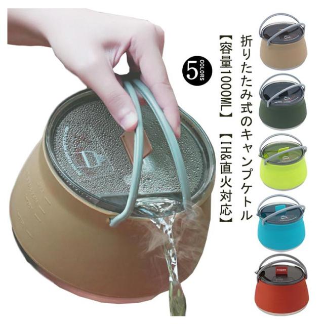 屋外 折り畳み 折りたたみやかん やかん 直火 アウトドア IH対応 シリコンケトル 1L キャンプ シリコン製 コンパクト 高速熱伝導 キャンプ キャンプ用品 携帯便利 超軽量 洗いやすい キャンプ用鍋 登山 釣り 旅行 野外活動 調理器具 家庭用 防災 防災グッズ