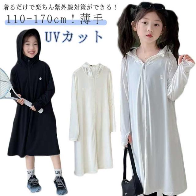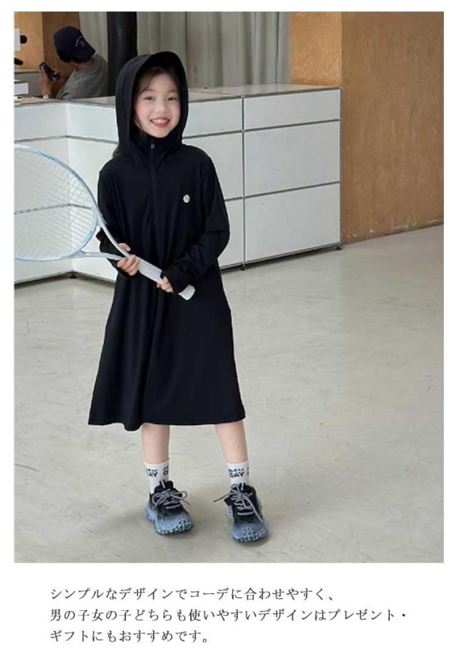 | 110-170cm!着るだけで楽ちん紫外線対策ができる!キッズUVカットロングパーカー 涼感のある、薄い生地なので通気性もよく、暑くなって季節に大活躍そうです。 冷房対策・虫除けや日よけ対策にもなる、また荷物にならないので、お外遊びに最適♪ シンプルなデザインでコーデに合わせやすく、男の子女の子どちらも使いやすいデザインはプレゼント・ギフトにもおすすめです。 | |