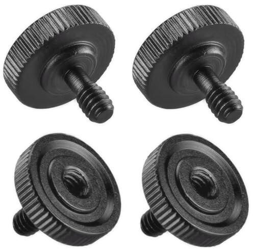 【製品概要】ネジサイズ:1/4インチ - 1/4インチ (オス-メス)スレッド 、 直径:24mm 全長:20mm、 重量:約7g/個、 材質:アルミニウム合金 、 カラー:ベーシック ブラック(黒・無地)、 ネジタイプ;右ねじ (正ネジ) 入り数:4本