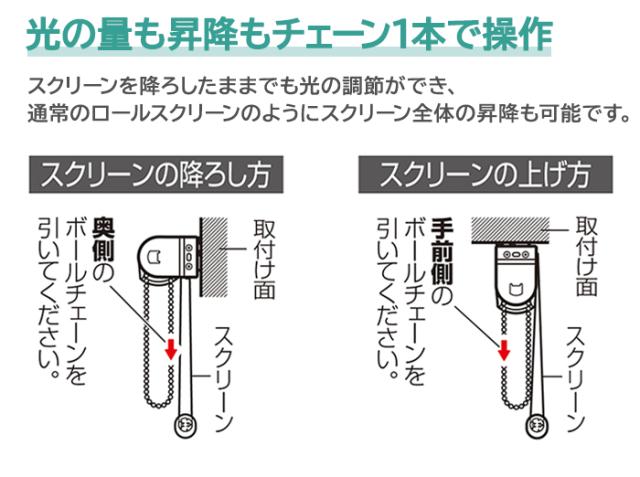 スクリーンを降ろしたままでも光の調節ができ、通常のロールスクリーンのようにスクリーン全体の昇降も可能です。