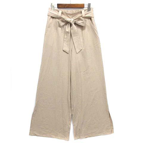 【中古】アーバンリサーチ URBAN RESEARCH items リボン付き ツータック ワイド パンツ 裾スリット ウエストゴム ベージュ F レディース