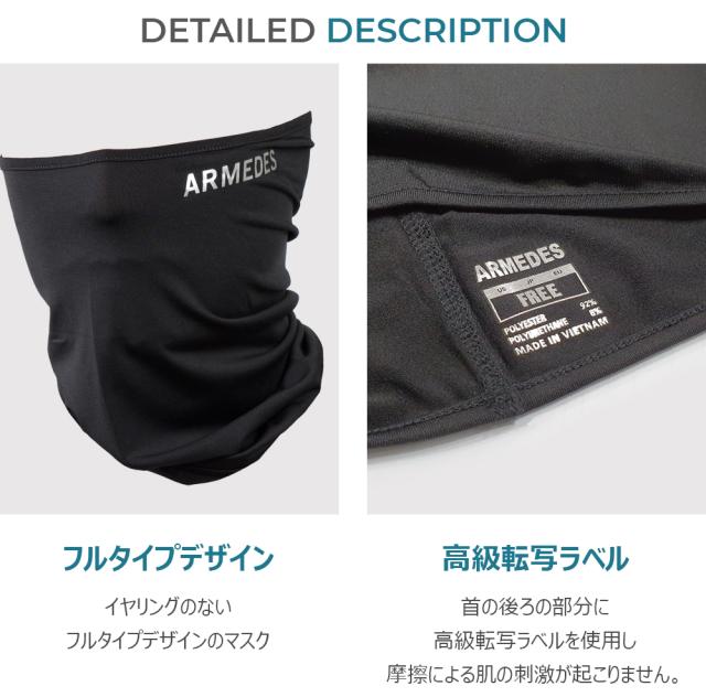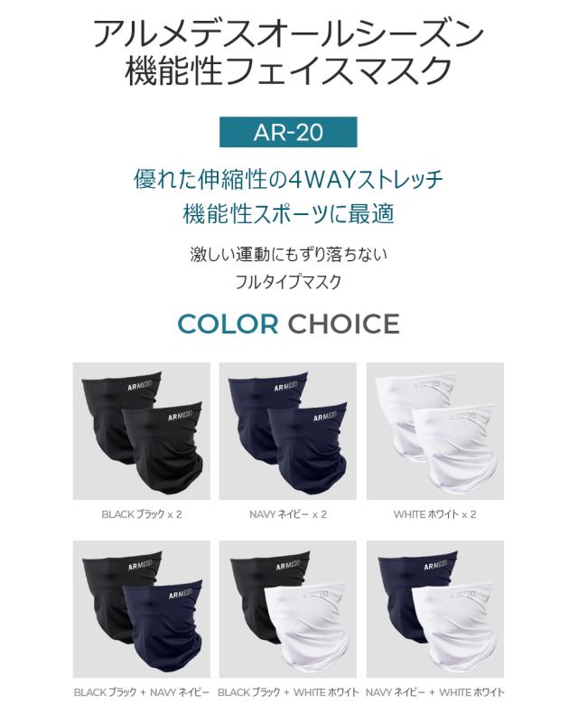 2枚セット 送料無料 ARMEDES アルメデス フェイスマスク 接触冷感 吸汗速乾 通気性 UVカット ストレッチ 洗える フェイスカバー 布マスク 飛沫 防止 冷感 ユニセックス 男女兼用 フリーサイズ 花粉症 紫外線 対策 フリーサイズ オールシーズン AR20