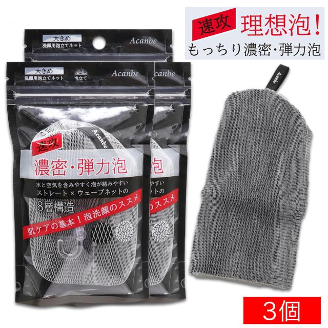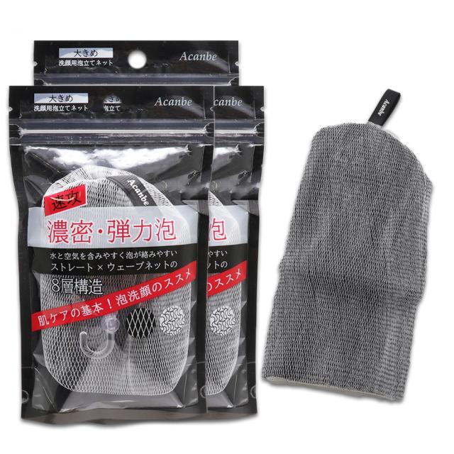 洗顔用泡立てネット 3個セット フック付 大きめ Acanbe 洗顔ネット