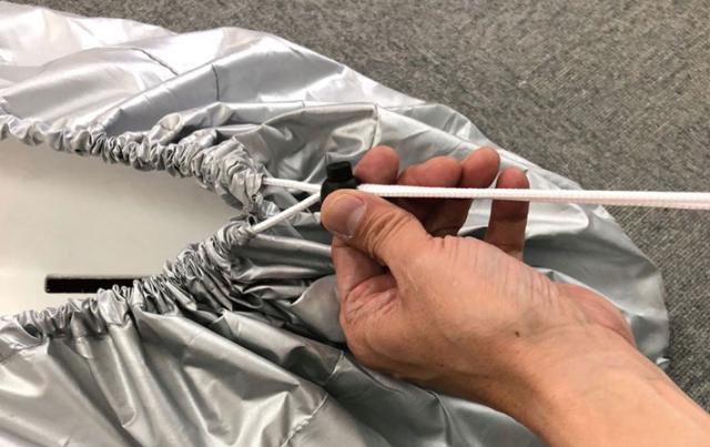 さらにフィット用のゴムバンドに並行して“締め上げ用の紐”ドローコードを全周に回すことでどんなサイズのボードにもピッタリタイトフィットできる。