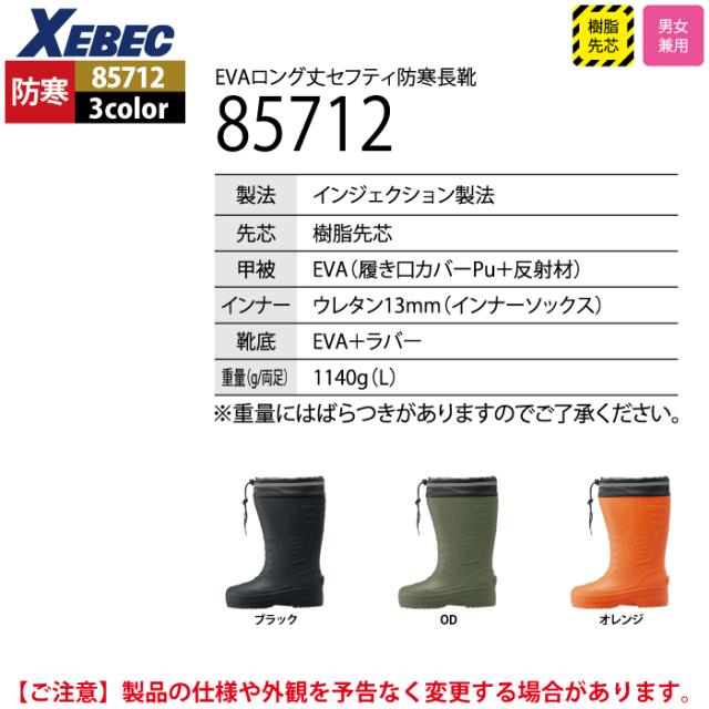 ジーベック XEBEC 作業服 85712 EVAロング丈セフティ防寒長靴 SSS-4L 秋冬用 作業着