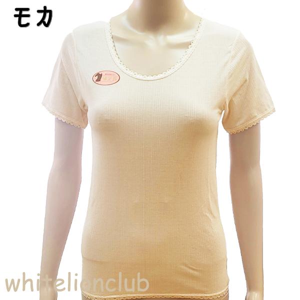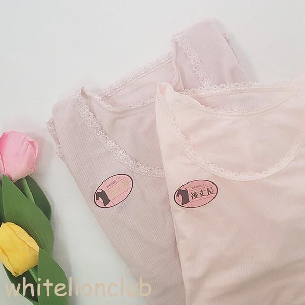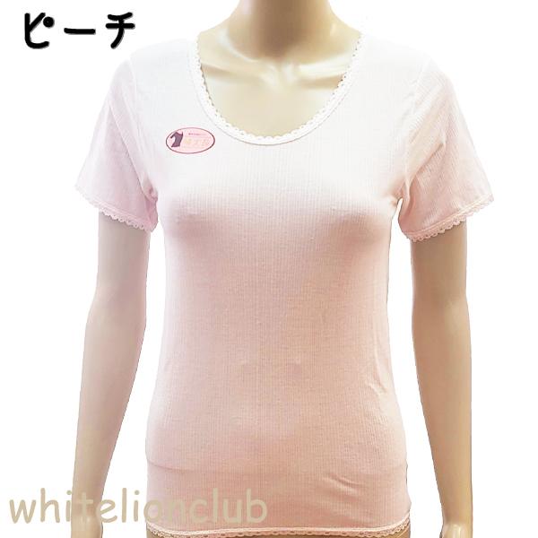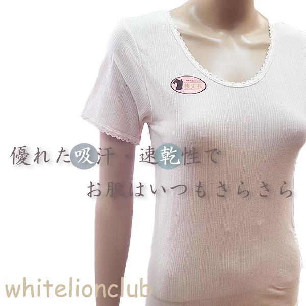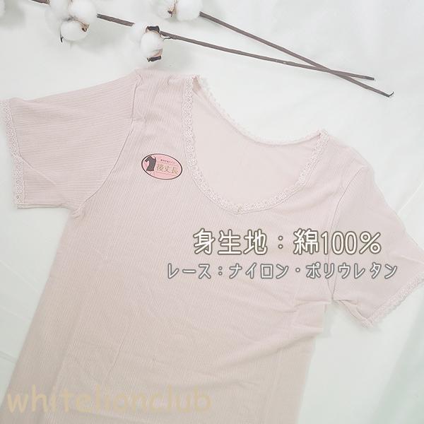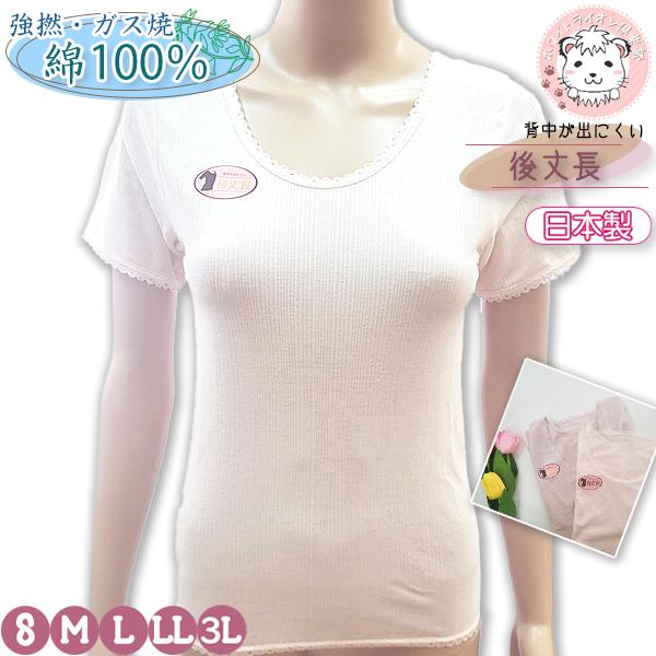 【アウトレット】半袖 インナーシャツ レディース 強撚 ガス焼 吸汗速乾 綿100% 後丈長 3分袖インナー 背中が出にくい 針抜き 日本製 S