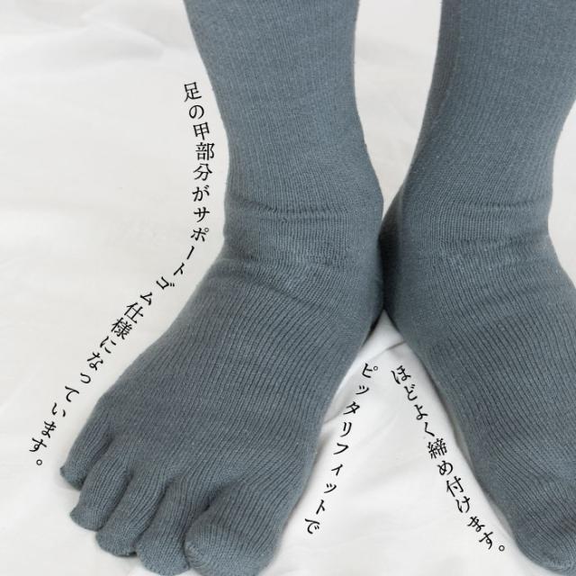 | 特長 | シルク80%混でとてもよい肌触りのシルク5本指ソックスです。 甲の部分にサポーターが付いているので、足の疲労を 和らげるのと同時に、靴下がずれることなく、しっかりと足を包んでくれます。 通気性に優れていて、汗ばむ時期もサラッと快適! 軽いスポーツやウォーキング、仕事用にも普段使いできます。 |
